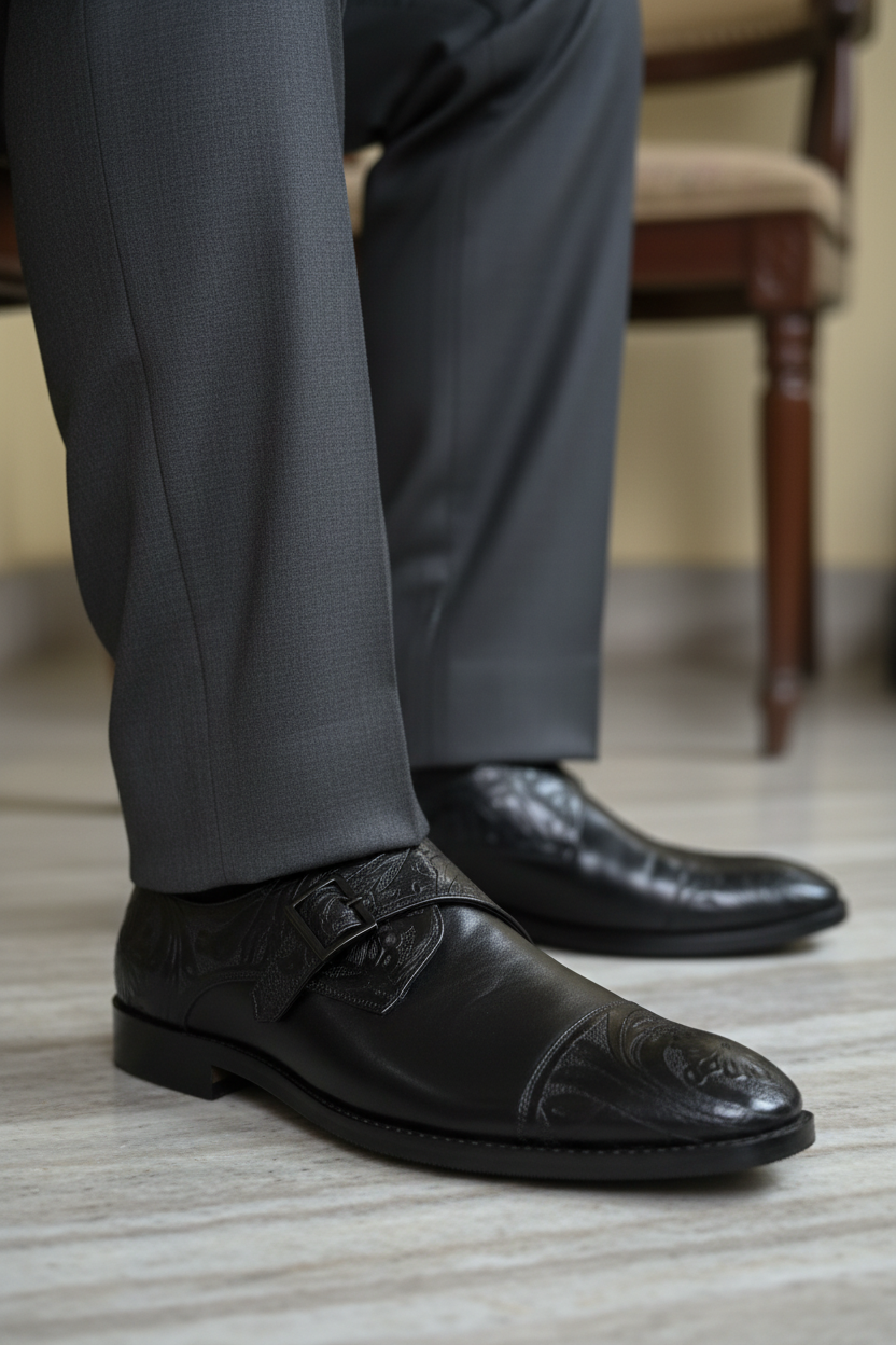 BLACK HANDCRAFTED SINGLE MONK STRAP FORMALS