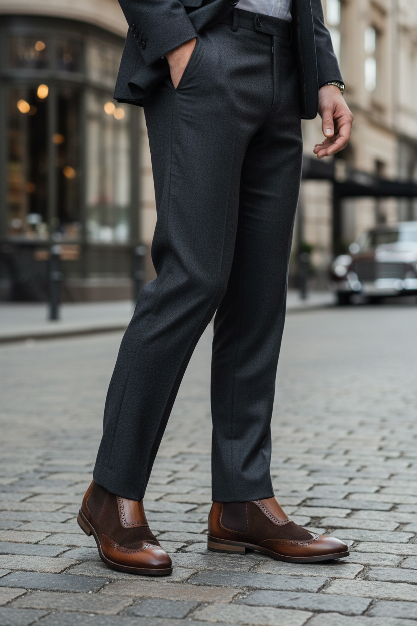 - Design: Classic brogue detailing with modern Chelsea boot style
