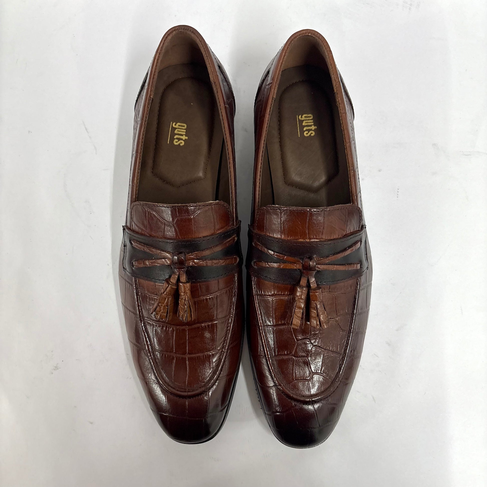 BROWN CROC-TEXTURED TASSEL LOAFERS